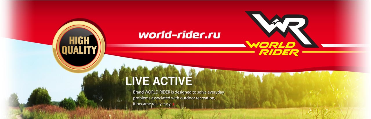 WORLD RIDER products are intended for active people who love spending time in nature. The brand was designed for the Russian market. WORLD RIDER makes recreation in nature as comfortable as possible. The WORLD RIDER brand's indispensable accessories are always on-hand and allow one to forget about everyday concerns. It is important to note that all WORLD RIDER products are manufactured taking into account safety requirements regarding environmental protection, flammability and household chemicals.